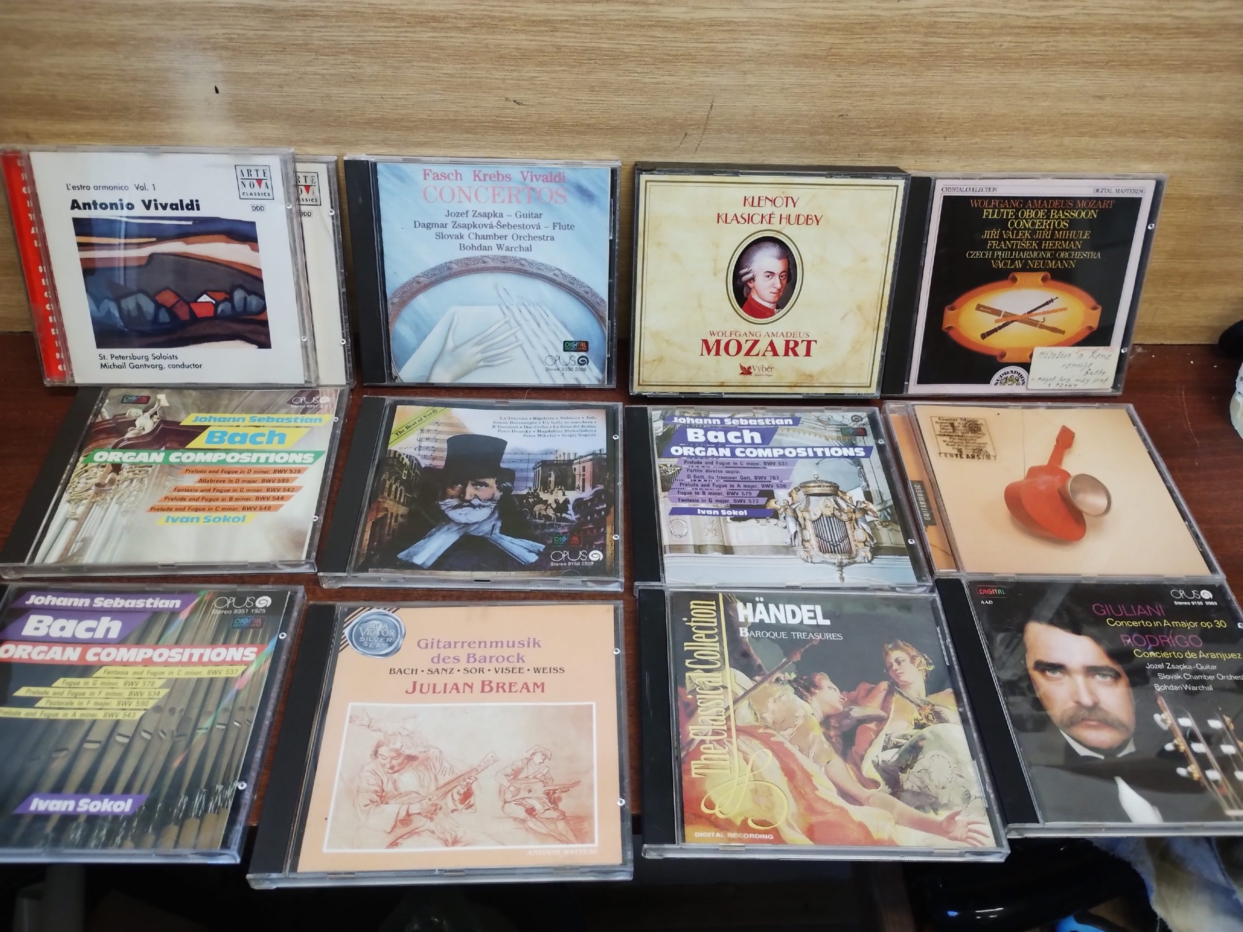 Vivaldi 1+2 + Conceretos, Mozart+ Zalbum+ Concertos, Handel, Gitarrenmmsik (Bach, … )2ks, Bach oragan 3ks, Rodrigo, Verdi