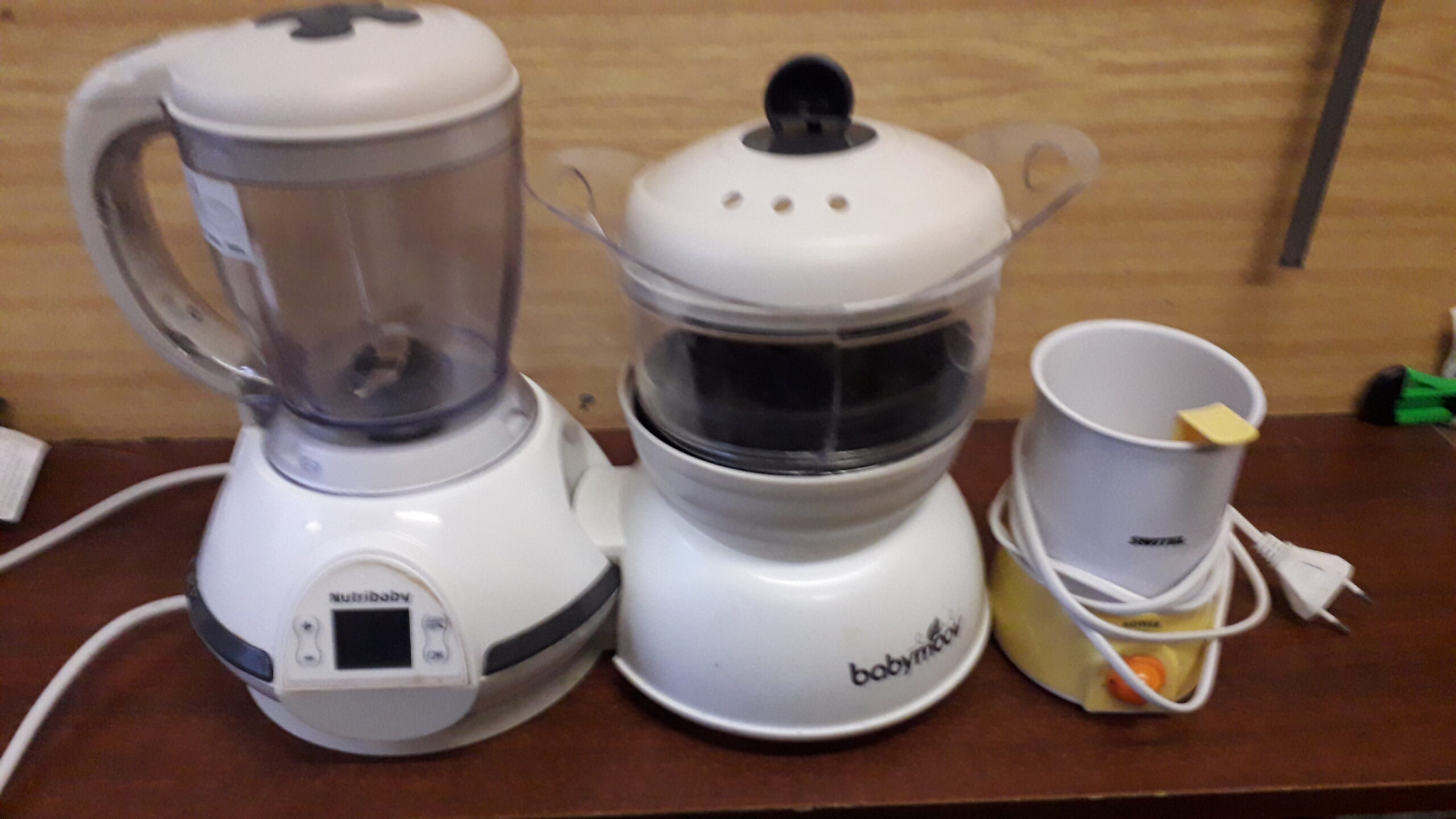 a)Nutribaby- baby moov A001115 mixér s nožom 400W+ naparovač 500W, poškodený (zlomené plexisklo) 20€