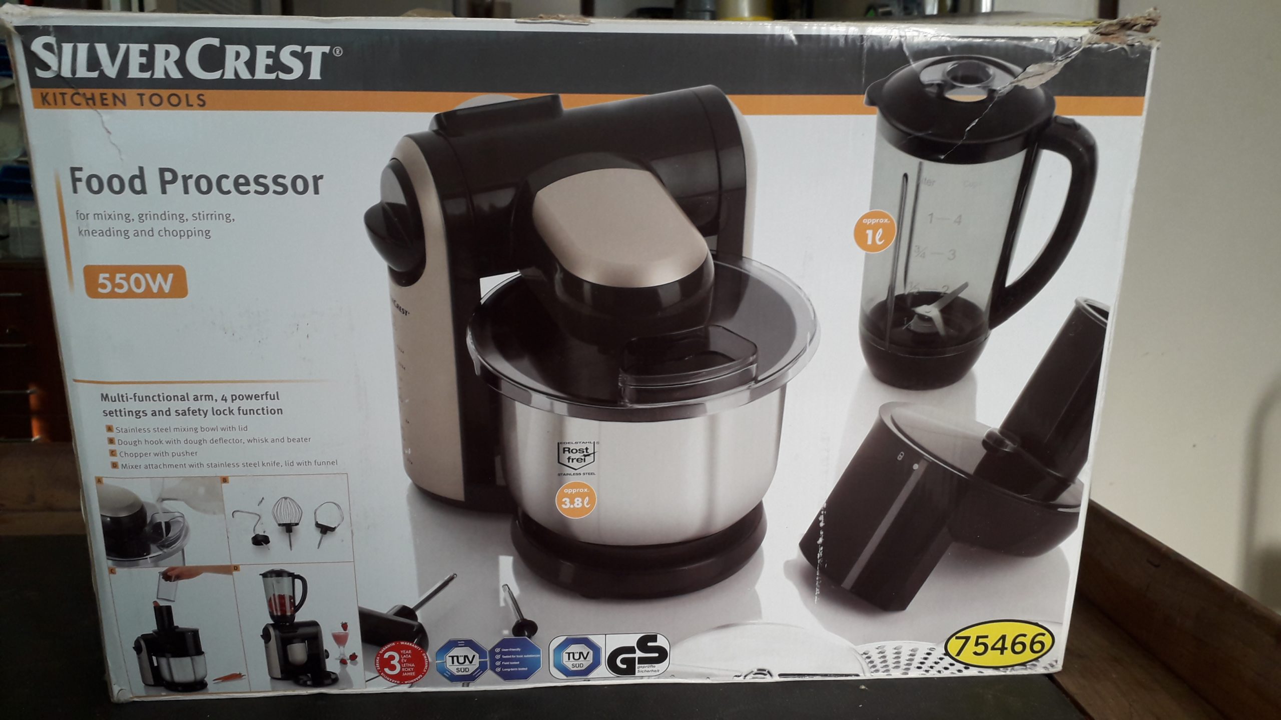 Silvercrest 550W 5 funkcii (šľahač, mixér, odšťavovač, miesič, strúhač) nerez 3,6l, 4° regulácia, držiak na stenu 43€! (Cena na webe 68€)