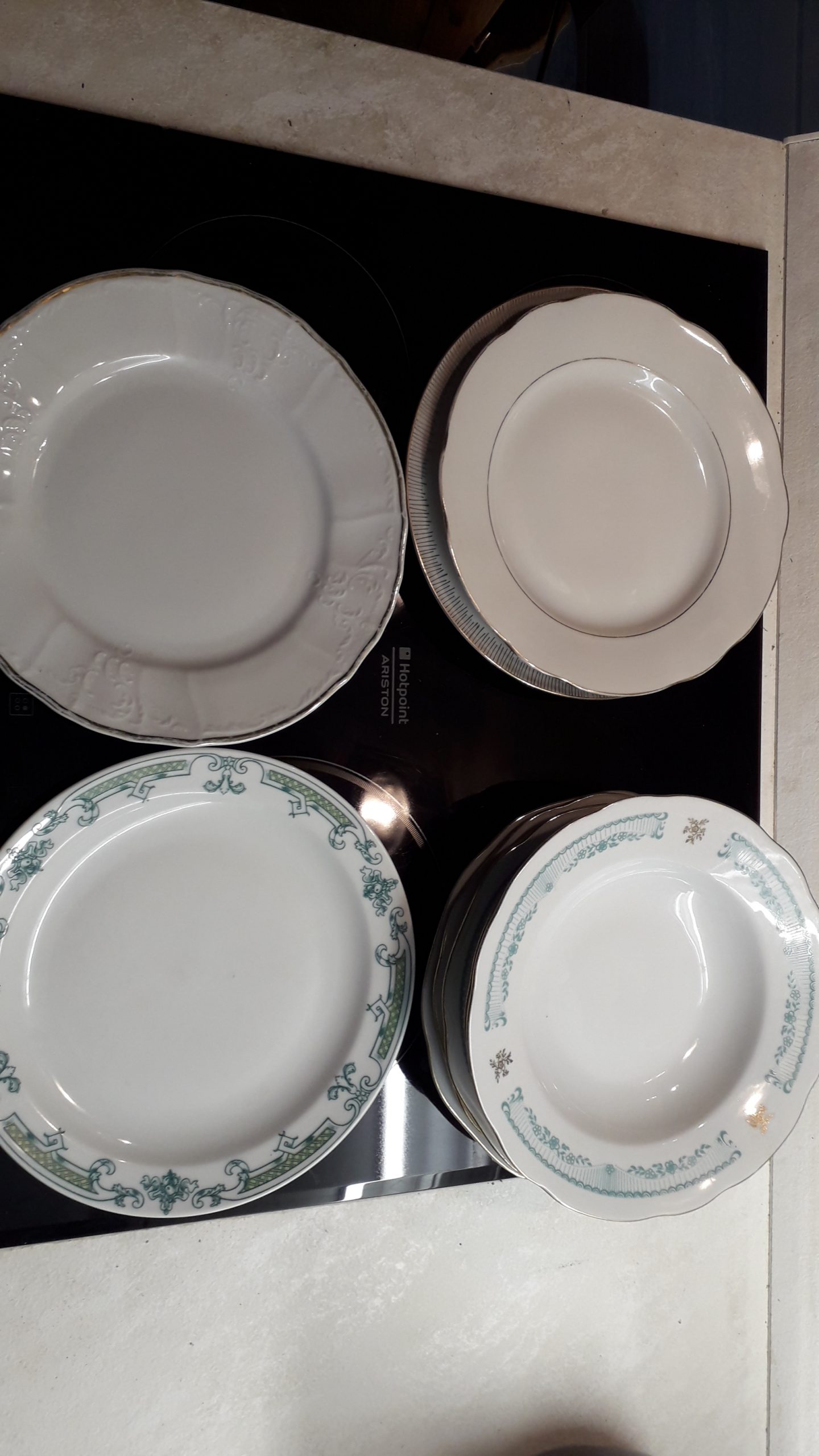 plytké 23,6cm 3ks + hlboké 24,4cm okraj s reliéfom 4ks + detto 23cm 1ks + detto plytký 24,6cm 1ks + hlboký 21,6cm jemný prelis na okraji 4ks