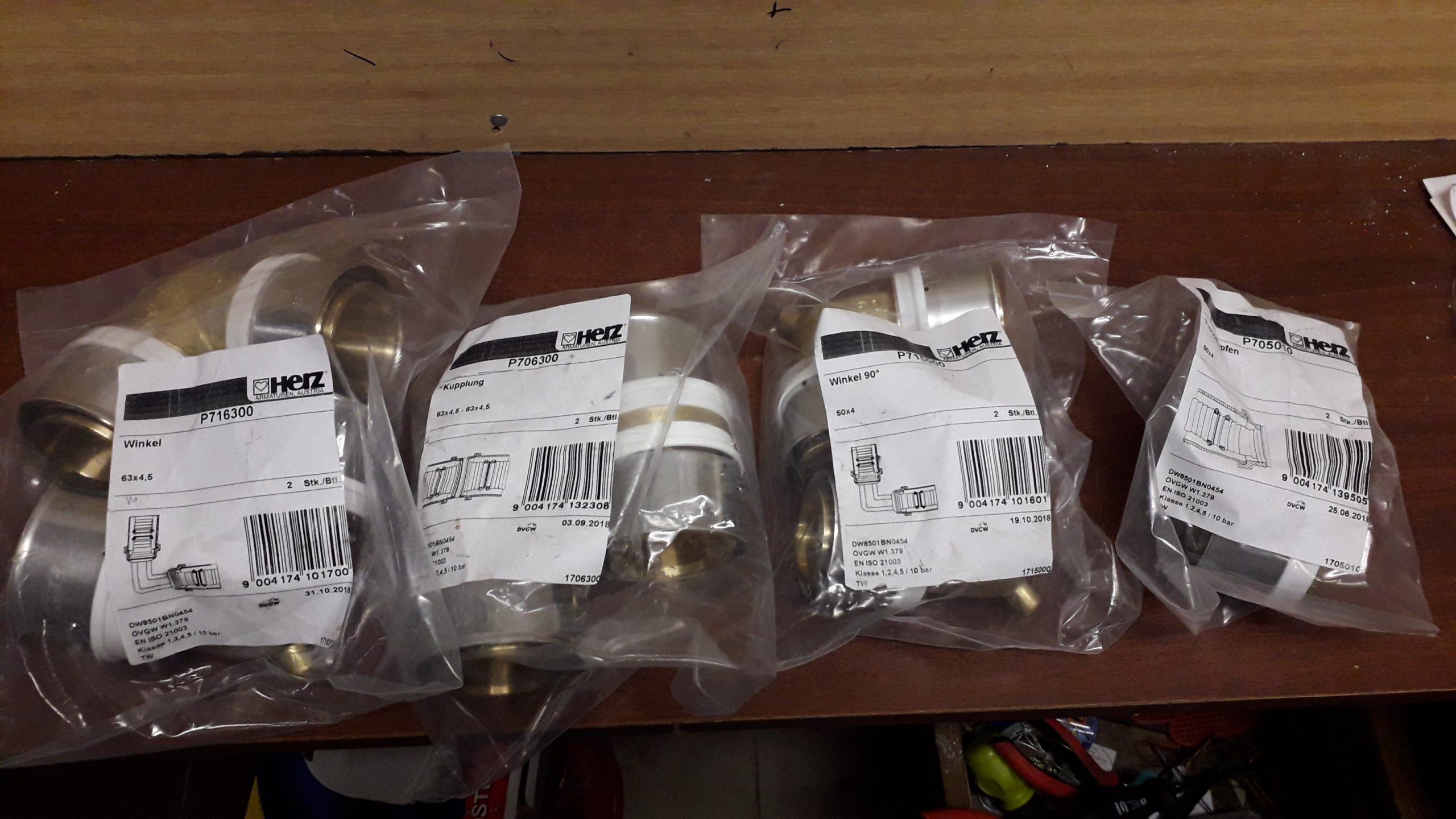 a)63×4,5: koleno 90° P716300 2ks po 43€! (cena na webe je 65€) + spojka priama P706300 2kspo 38€